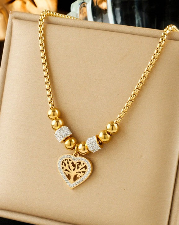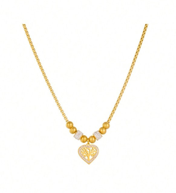 Collar "Corazón Árbol de la Vida" con Cadena Veneciana y Cristales